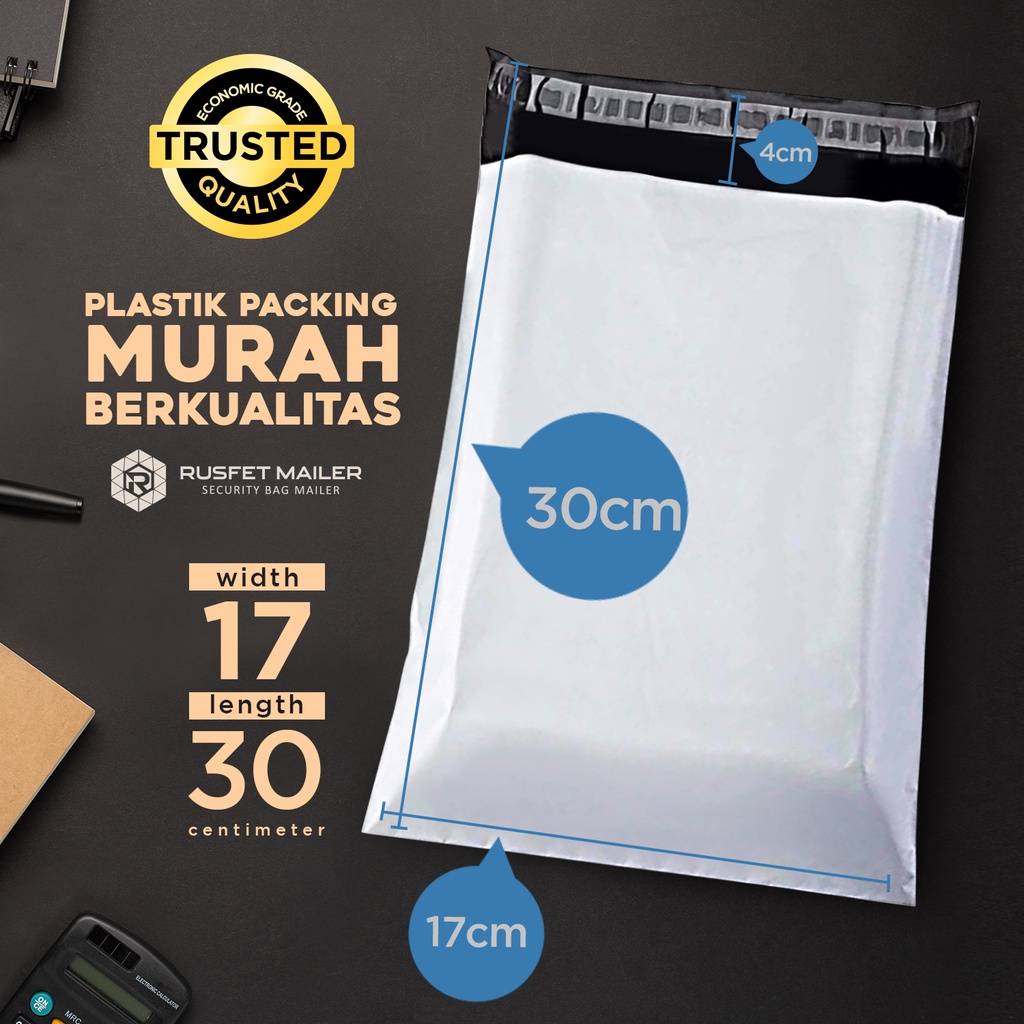 AMPLOP PLASTIK POLIMAILER POLYMAILER PACKING ONLINE PUTIH POLOS MURAH RUSFET 17X30