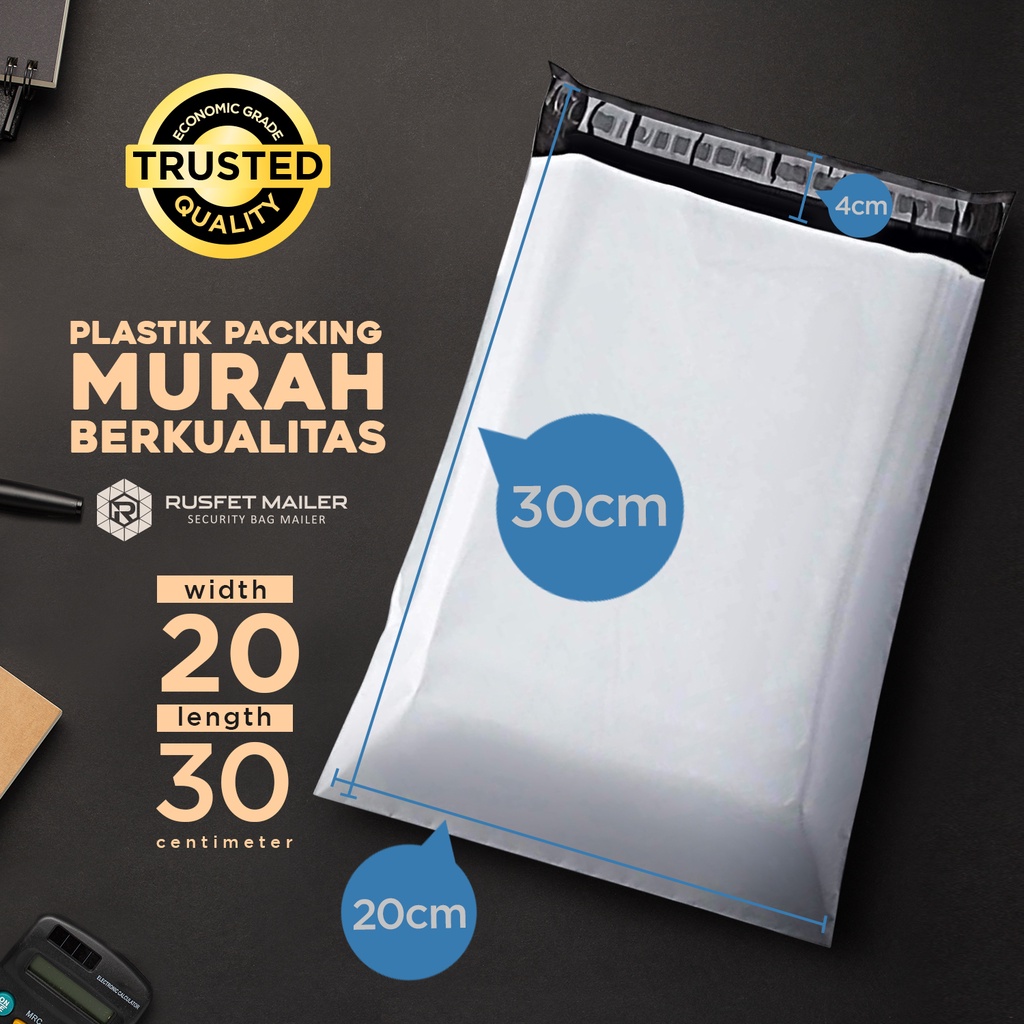 AMPLOP PLASTIK POLIMAILER POLYMAILER PACKING ONLINE PUTIH POLOS MURAH RUSFET 20X30
