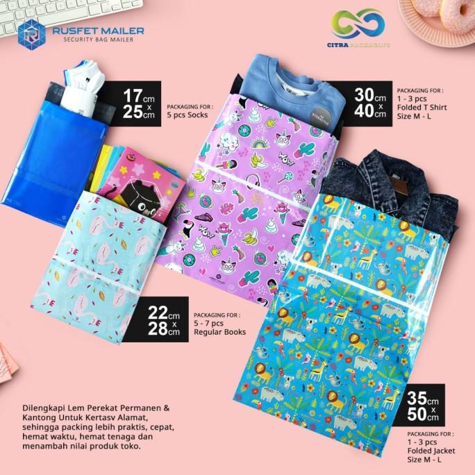 AMPLOP PLASTIK POLYMAILER MOTIF merk RUSFET DENGAN