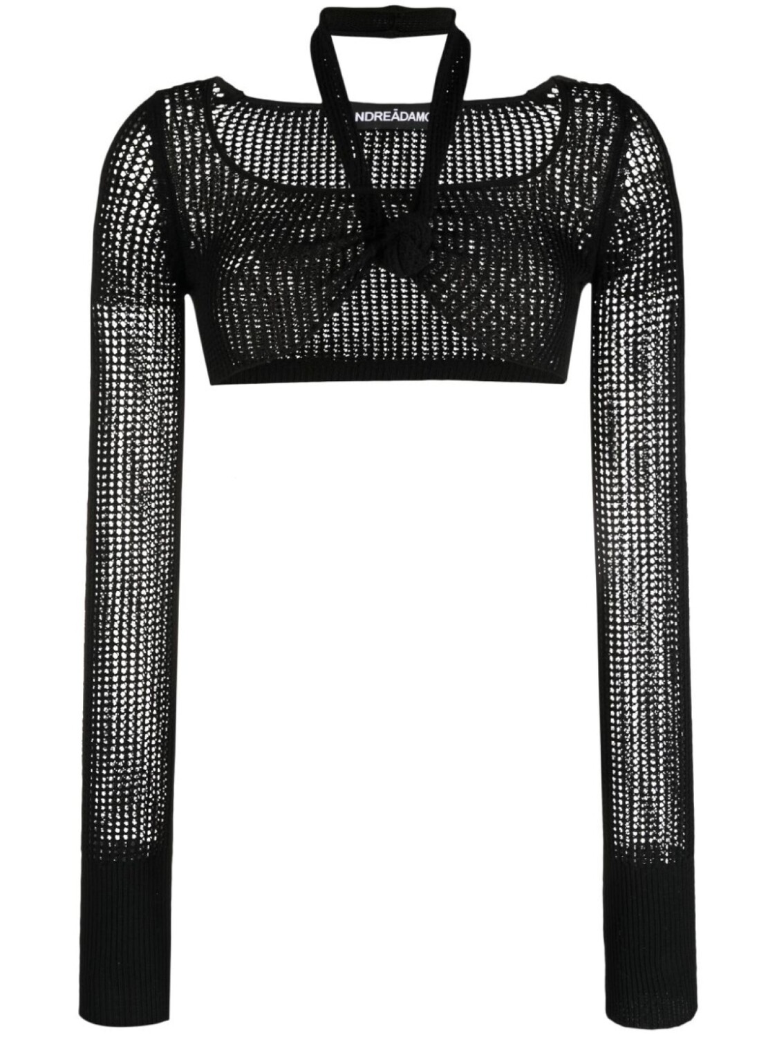ANDREĀDAMO укороченный топ с длинными рукавами, черный