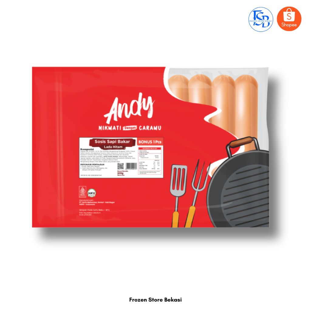 ANDY SOSIS SAPI BAKAR ORIGINAL & LADA HITAM 500GR ( ISI 6 + 1 )