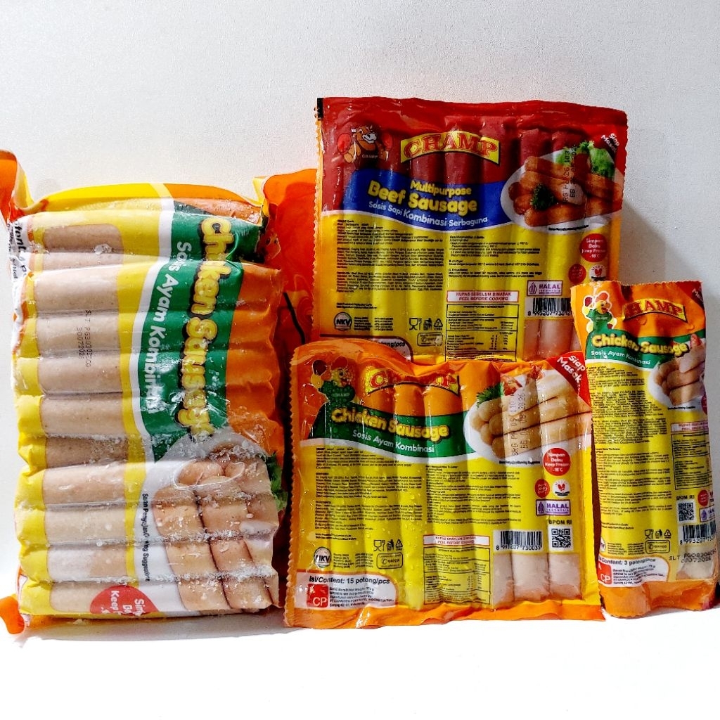 ANEKA SOSIS CHAMP RASA SAPI & AYAM TERSEDIA UKURAN 75 GRAM & 375 GRAM & 1 KG