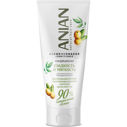 ANIAN Кондиционер для гладких и струящихся волос с кератином, гиалуроновой кислотой, пантенолом и маслом марулы "Гладкость и мягкость" Liso&Suave 250, Кондиционер для гладких и струящихся волос с кератином, гиалуроновой кислотой, пантенолом и маслом марул