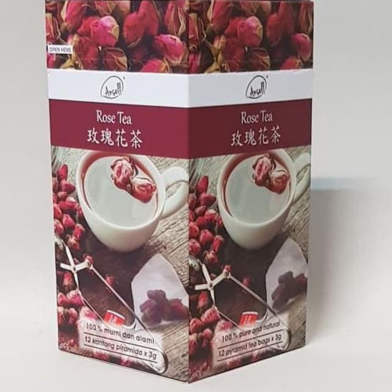 Ansell Rose Tea Minuman Teh, Rose Tea terbuat dari kuncup bunga mawar, diproses secara alami dan tidak menggunakan bahan pengawet. Sangat praktis karena dikemas dalam kemasan piramida, tinggal dicelup ke dalam air panas (seperti teh celup).