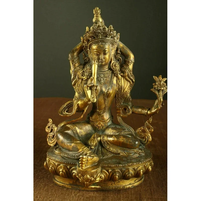 Chinese Tibetan Buddhism Old Bronze Gilded Green Tara Tibetan Buddha Statue Guanyin statueb
