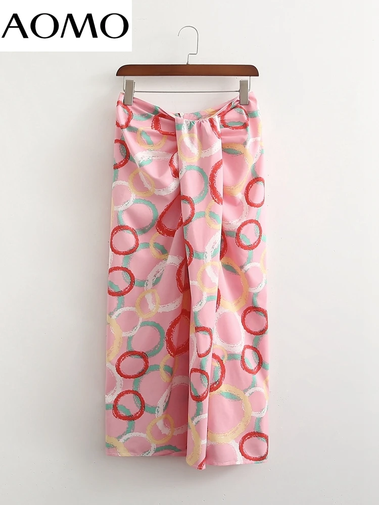 AOMO, новинка 2022, женская розовая юбка миди в складку с круглым принтом, винтажная Женская юбка с боковой молнией, 1D404A