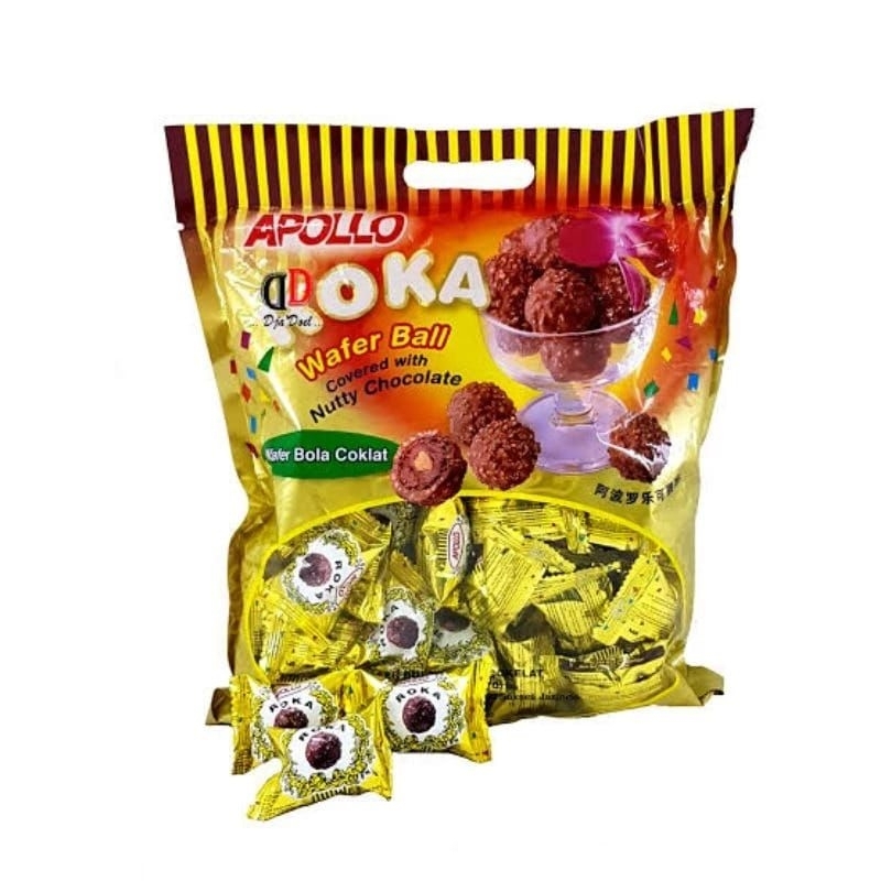 Apollo Roka adalah camilan wafer bola yang dibalut cokelat yang lezat dan manis, dengan tekstur wafer yang renyah.