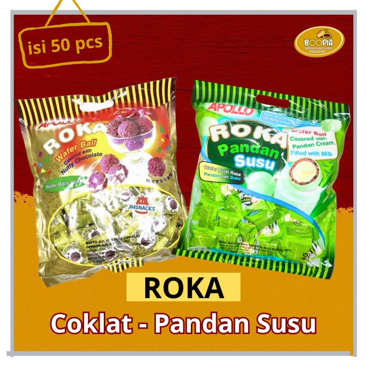 APOLLO ROKA WAFER BOLA COKLAT / ROKA PANDAN SUSU / WAFER RASA PANDAN DAN SUSU ISI 50