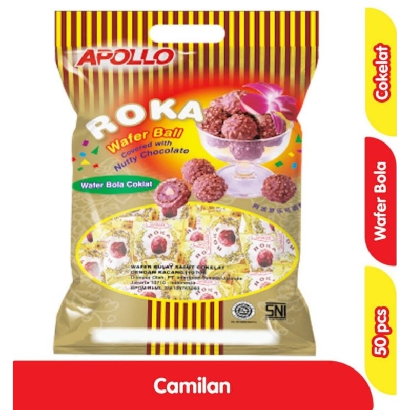 APOLLO ROKA WAFER COKLAT BOLA/BALL ISI 50 PCS KEMASAN 300 GRAM TStore