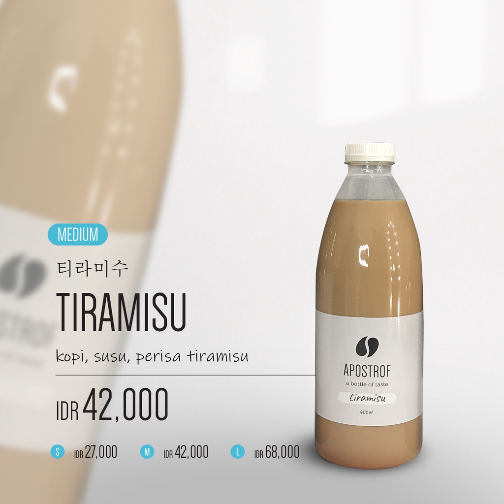 Minuman kopi susu dengan perisa tiramisu (600ml). Cocok untuk teman kerja / santai.