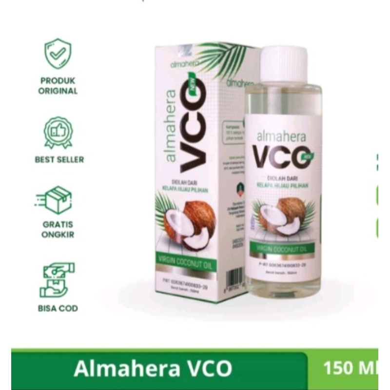 ALMAHERA VCO adalah minyak kelapa murni yang diolah dari daging kelapa hijau (Cocos nucifera) pilihan yang dikeringkan dengan pemanasan tidak langsung pada suhu dibawah 70°C, sehingga memiliki kualitas yang sangat baik. VCO mempunyai beberapa keunggulan, di antaranya kadar bilangan penyabunan, bilangan peroksida, dan asam lemak bebas yang rendah, dan sifat antibakteri yang lebih tinggi.