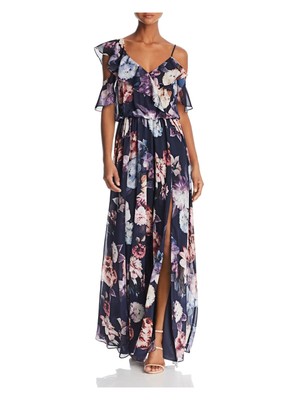 AQUA Женское темно-синее длинное вечернее платье гармошкой с разрезом и V-образным вырезом, Navy