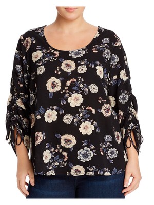 AQUA CURVE Женский черный топ с круглым вырезом и рукавами 3/4 Plus