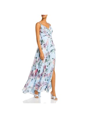 AQUA FORMAL Женское голубое платье-футляр с высоким разрезом и тонкими бретельками, Light blue