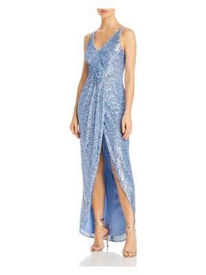 AQUA FORMAL Женское голубое торжественное платье с запахом и тонкими бретельками, Light blue