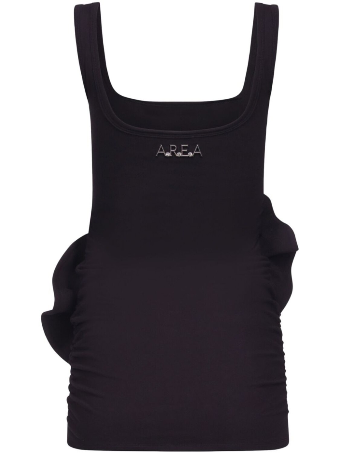 AREA платье мини с цветочной аппликацией и оборками, черный