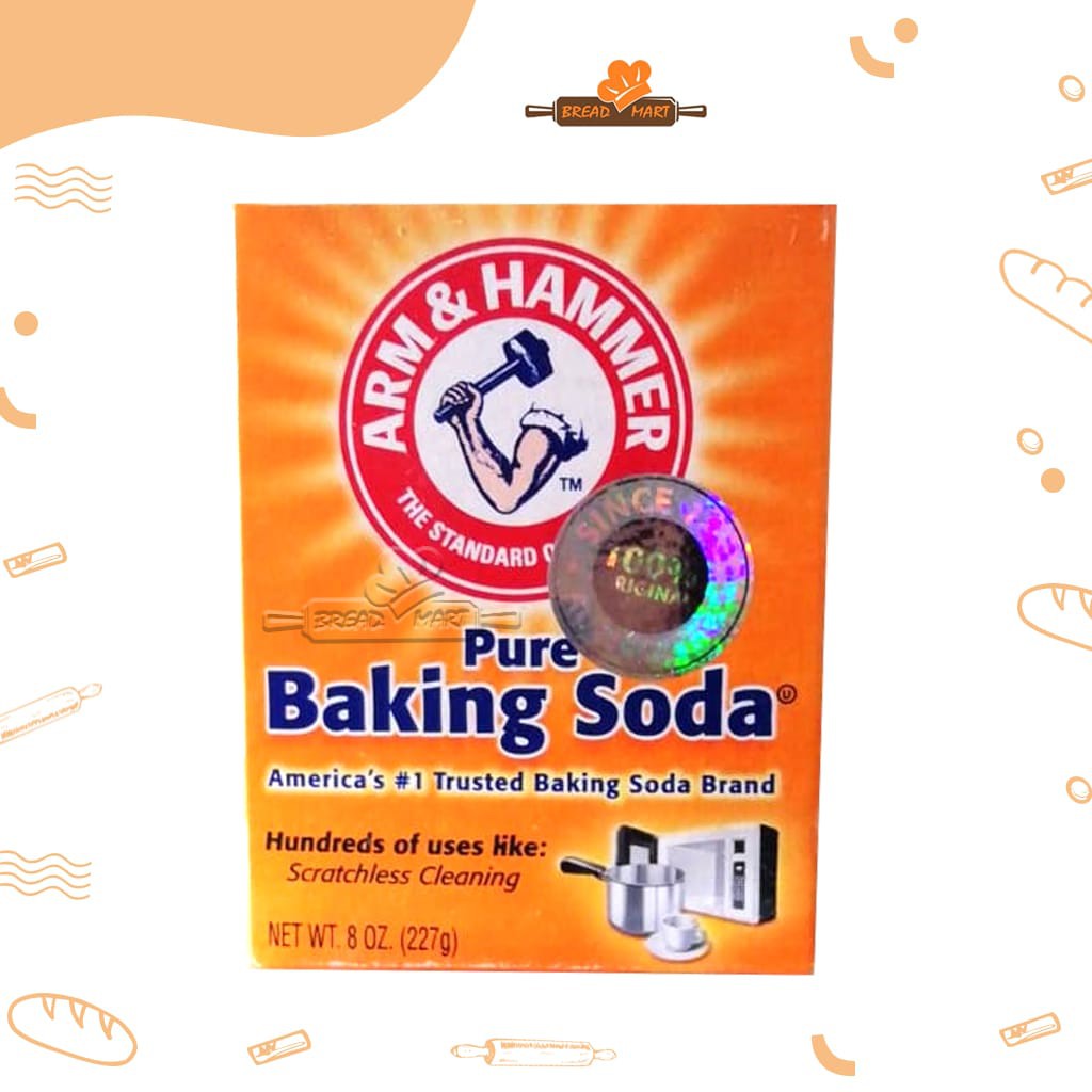 Baking soda murni adalah senyawa garam mineral yang kandungannya 100% sodium bikarbonat (NaHCO3), yang di produksi dalam bentuk bubuk halus, berwarna putih bersih, sedikit berkilat, tidak berbau, rasanya sedikit asin (kandungan sodium hingga 28%), dan bila dilarutkan dalam air akan menunjukkan pH alkali hingga 8,5%.
