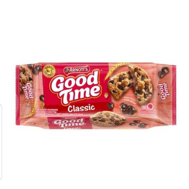 Arnott's Good Time makanan ringan kukis dengan cokelat chips dan sangat cocok dimakan bersama keluarga. Arnott's Good Time hadir dengan spesifikasi sebagai berikut :