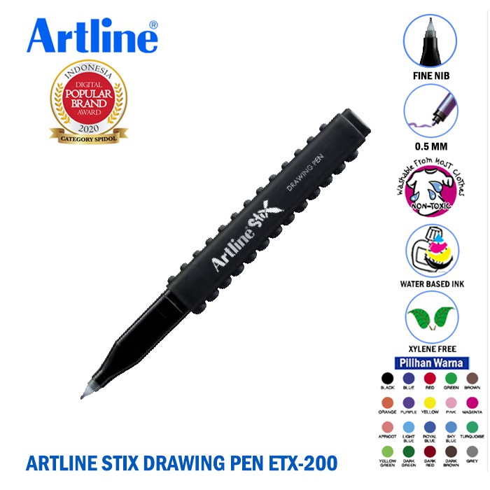 Spidol dengan nib atau ujung pena cocok untuk menulis, dan membuat sketsa. Tersedia varian 20 warna yang siap mewarnai karyamu. Bersifat waterbased. Bebas Xylene sehingga bau tinta tidak menyengat dan aman digunakan anak-anak.