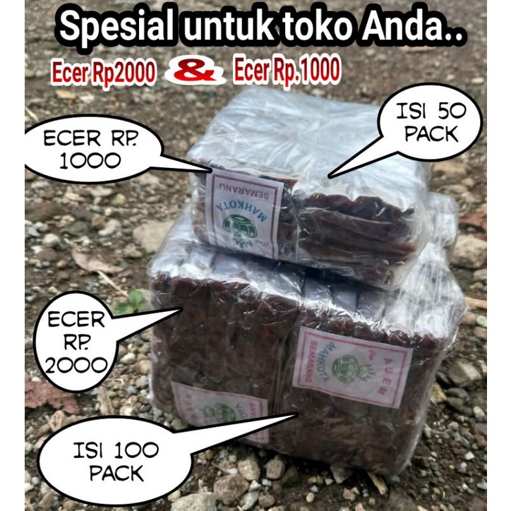 tersedia kemasan kecil isi 50biji untuk eceran 750- 1000,dan kemasan besar isi 100 biji untuk eceran 1000-2000an(tergantung wilayah anda)