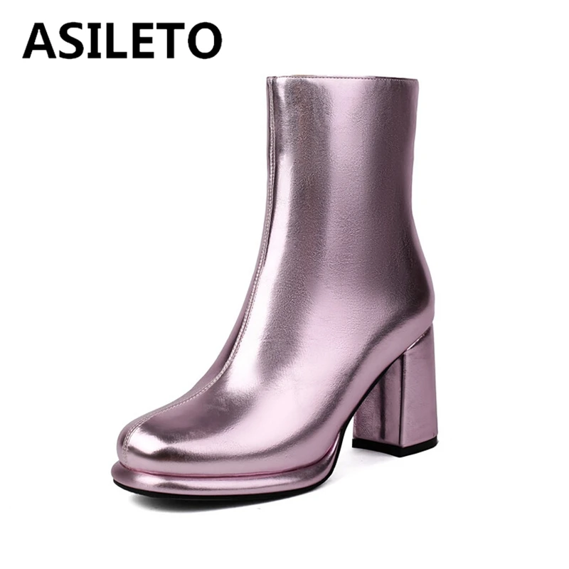 ASILETO Новые Классические ботильоны с круглым носком блочные каблуки 8 см платформа 1 см молния лакированная кожа плюс размер 46 48 49 Мода