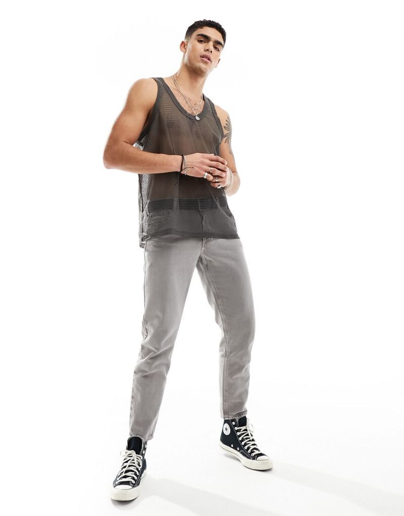 ASOS DESIGN – Серая ажурная футболка свободного кроя
