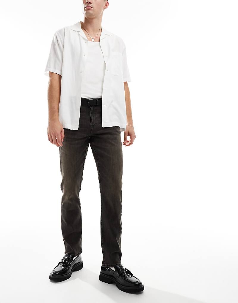 ASOS DESIGN – приталенные джинсы черного цвета с коричневым обесцвечиванием