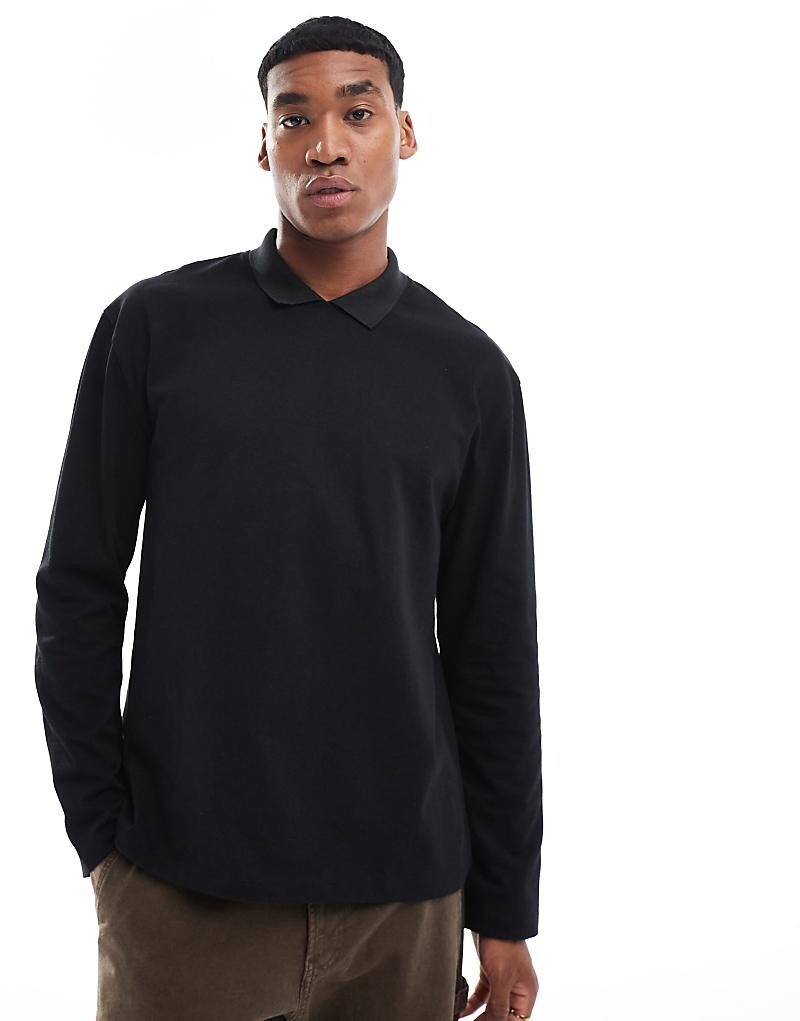 ASOS DESIGN – черная свободная рубашка-поло с длинными рукавами и круглым вырезом