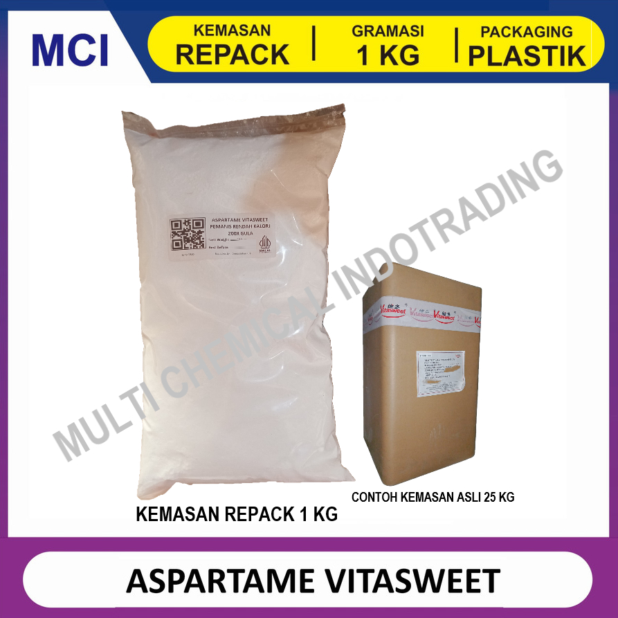 ASPARTAME VITASWEET KEMASAN REPACK 1 KG DARI KEMASAN ASLI DUS 25 KG.
