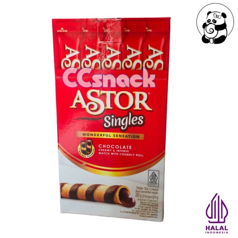 Astor Singles adalah Wafer yang berbentuk lonjong dengan motif spiral di luarnya. Tersedia dengan varian cokelat yang lezat serta renyah
