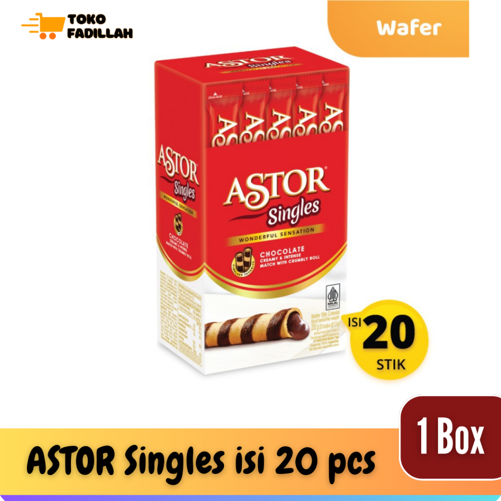 Astor Singles merupakan varian baru dari Astor yang hadir dengan kemasan satuan. Astor Singles merupakan paduan sempurna antara wafer renyah dan isi cokelat yang tebal & banyak.