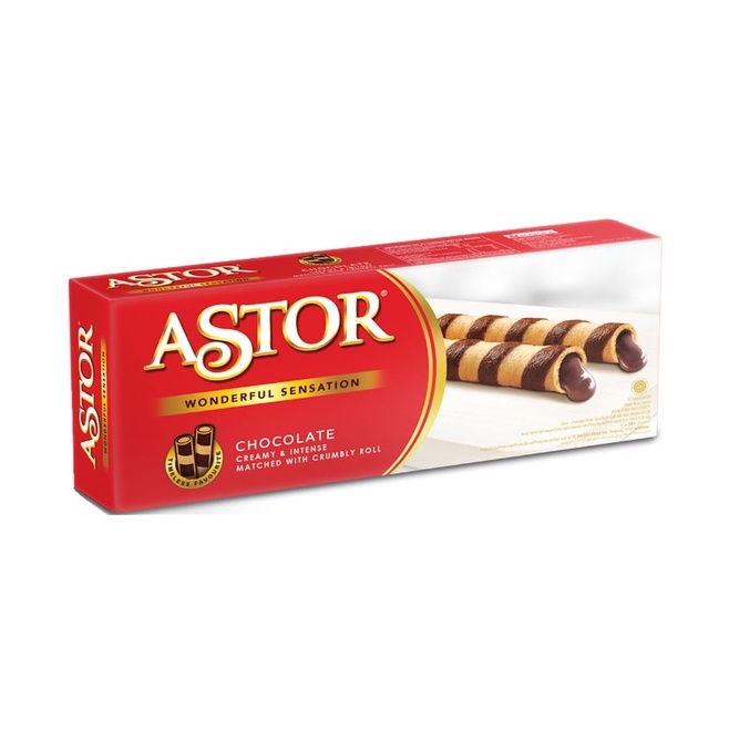 ASTOR WAFER STICK 150 GR adalah wafer roll cokelat dengan kombinasi wafer renyah dengan isi cokelat yang banyak.