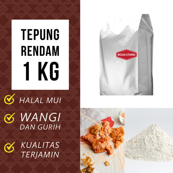 & Deskripsi Tepung Rendam Shihlin / Taiwan Chicken 1 kgBerat Bersih = 1 kg. Tepung Rendam Boga Utama diracik dari tepung dan rempah pilihan, sudah ada rasanya dan wangi dari ekstrak ayam asli. cari racikan yang pas, maupun untuk masak sendiri di rumah.Boga Utama juga sudah memiliki sehingga aman digunakan. Tanpa Pewarna Buatan Tatrazine, Tanpa Bahan Pengawet, dan Bahan Tambahan Pangan berbahaya lainnya. ———————————————————————— 1. Potong ayam tipis-tipis sesuai selera, cuci bersih, lalu tiriskan.2. Larutkan 20 gram marinasi ke dalam 40 ml air dingin, tuang ke dalam potongan ayam.3. Aduk hingga rata, diamkan di kulkas paling sebentar 4 jam hingga meresap, lebih baik semalaman disimpan di kulkas. & 1. Siapkan adonan basah : 100 gram tepung rendam dicampur dengan 300 gram air dingin.2. Siapkan adonan kering : tepung kasar ditaroh di tempat yang lebar.3. Celupkan ayam yang sudah dimarinasi ke dalam adonan basah, lalu celup ke tepung kasar.4. Goreng di suhu 160-180 C sampai matang dan kriuk.5. Angkat, tabur dengan bumbu selagi masih panas di kedua sisi, potong sesuai selera.Varian rasa bumbu : salt pepper, bbq, keju, seaweed, balado, mie goreng, cabe pedas. : toko168-/etalase/taiwan-chicken-boga-utama-halal