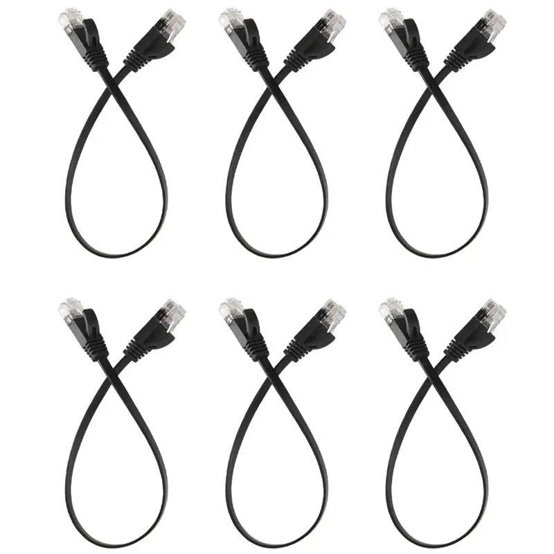 AU33-6 Pcs 1 Ft Flat Internet Network Cable Solid Cat6 High Speed Patch Lan Wire With Snagless Rj45 Connectors