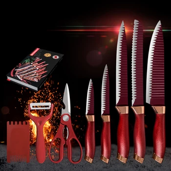 MUZ Stainless Steel Chef Knife Set 8" inch Chef Bread Slicing Knife w/Scissor Peeler Finger Protector Available Red Brown Black