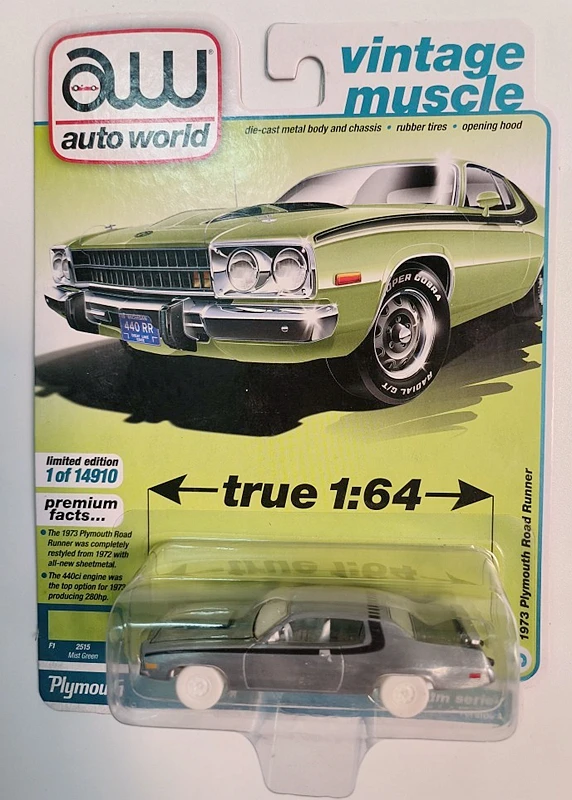 AW 1/64 AUTO World 1973 Плимут, коллекция автомобилей из литого сплава, модельные украшения на колесиках