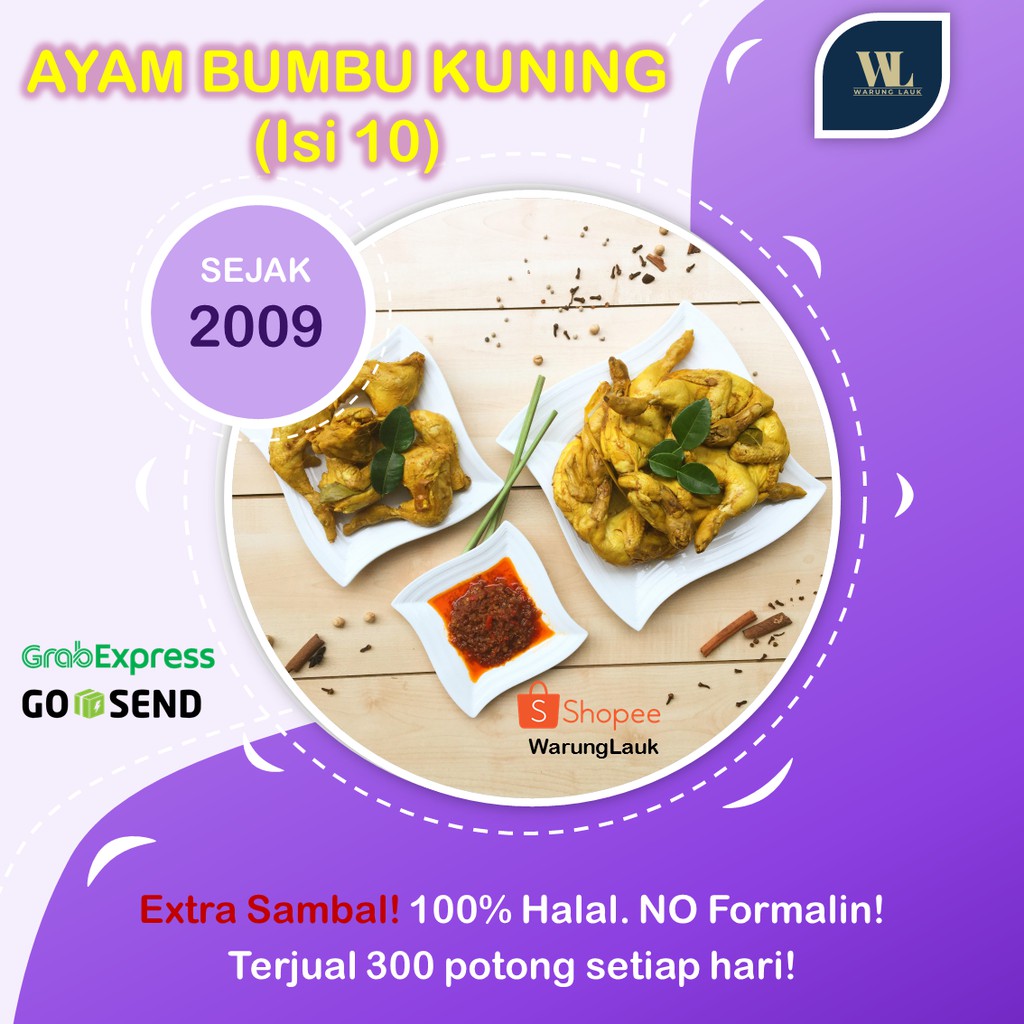 Pakdhe, Budhe, Om, Tante, dan Bu Tedjo! Yuk cobain Ayam Bumbu Kuning kita. Tahun ini kami Go Online nih