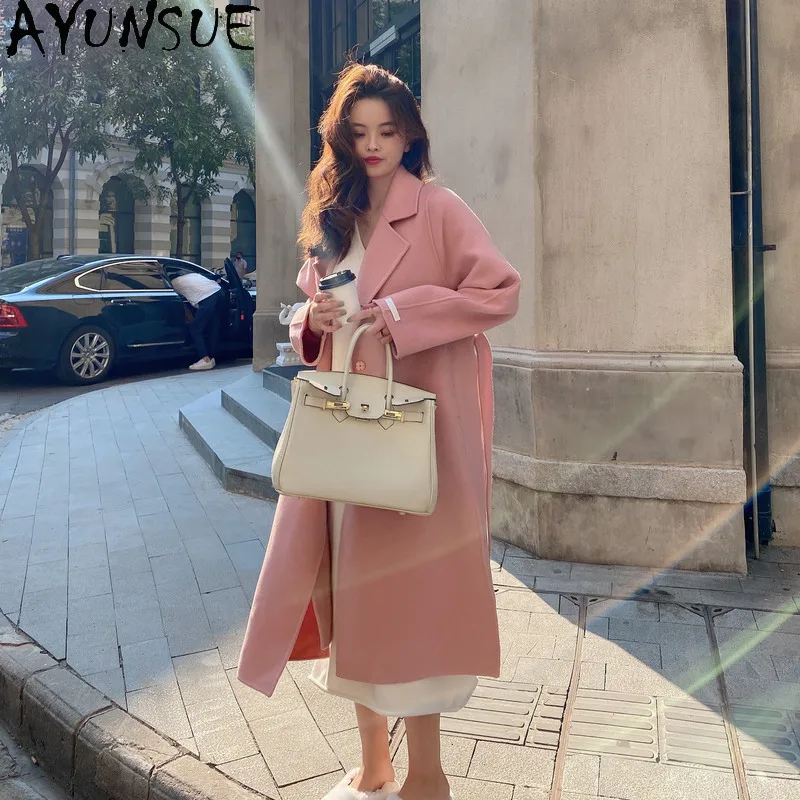 AYUNSUE 100% шерстяное пальто, женская куртка, пальто и куртки в Корейском стиле, Женская длинная розовая одежда, осень-зима 2021, Женская куртка 16 LW