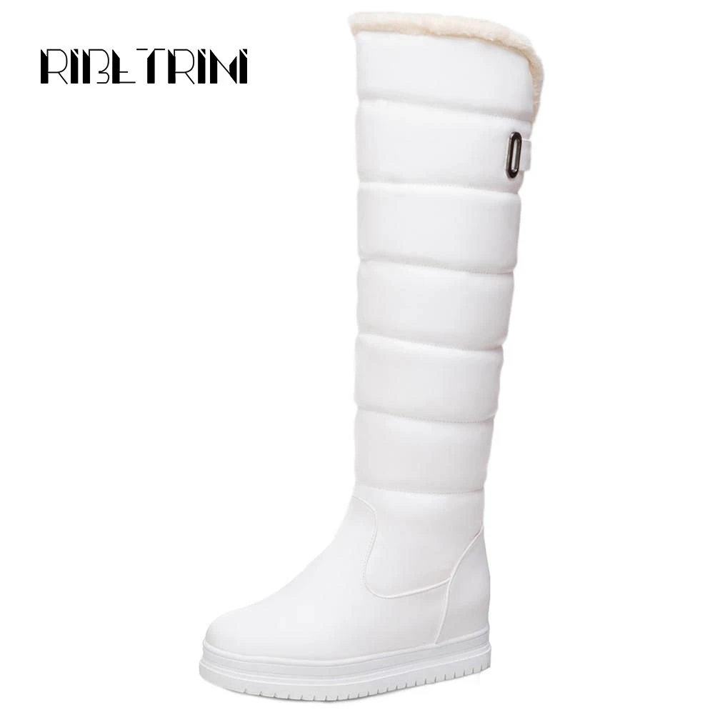 RIBETRINI Snow Boots Women New Designer Hidden Wedge Heels Platform Winter Fur Shoes Woman Slip On Warm Knee High Boots Big Size