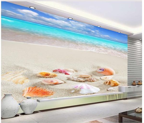 голубое небо, белые облака, солнечный берег раковины, 3d тв фон стены современной гостиной обои