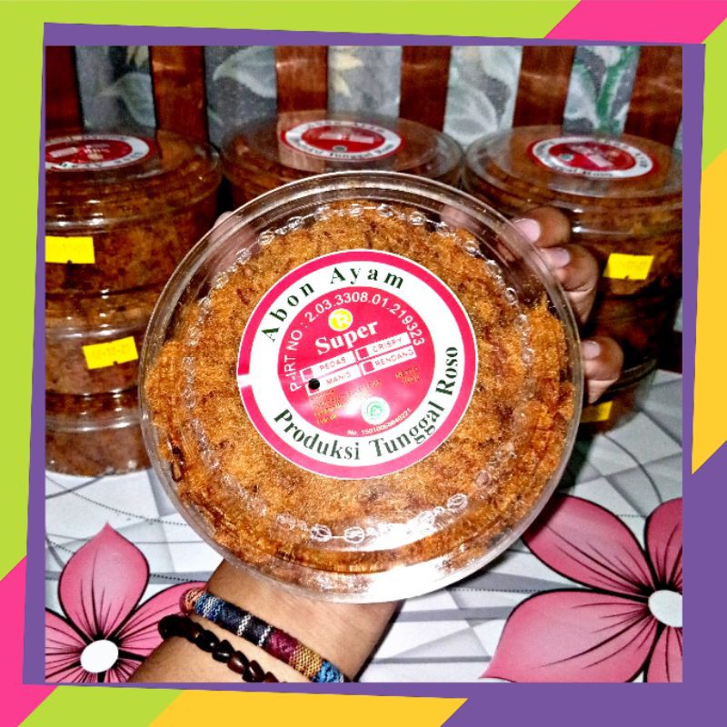 Spesial produk abon yang dibuat dari olahan ayam. Di produksi dengan bumbu yang pilihan, sehingga menghasilkan cita rasa yang khas dan nikmat.