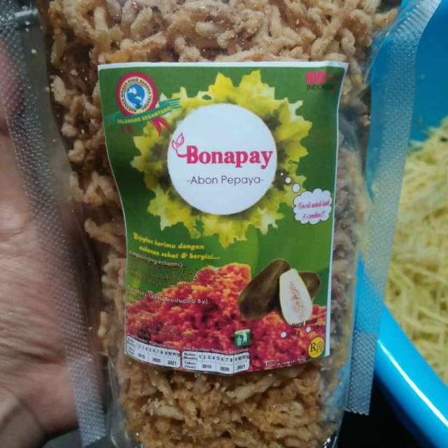 Camilan temen makan nasi enak n gurih enak juga d combinasi dgn baso n mie ayam abon bonapay terbuat dr pepaya muda dan campuran tepung beras.