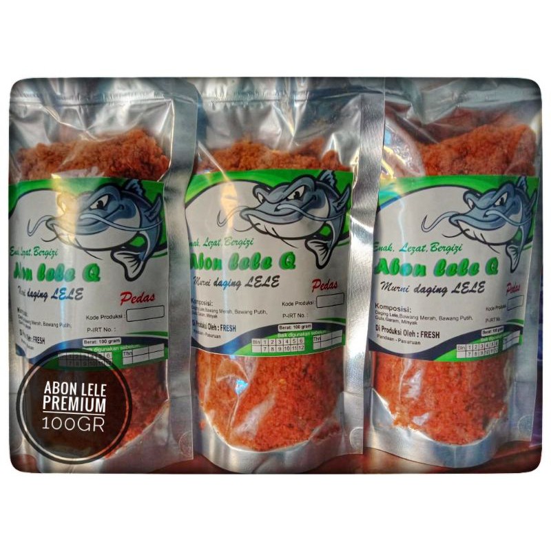 Abon lele tanpa campuran kemasan pouch metalize berat bersih 100gr. cocok buat stok lauk anak kos, traveling, anak pondok, mama malas masak, dll