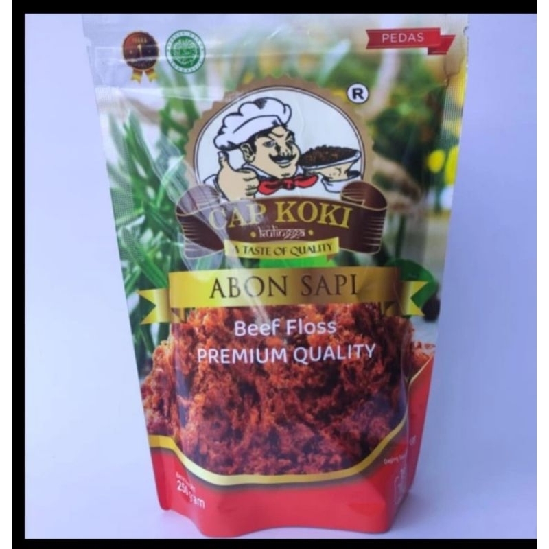 Abon Sapi Cap Koki terbuat dari 100% daging sapi segar pilihan yang diolah secara khusus dengan bumbu rempah khas sehingga menjadikan Abon Sapi Cap Koki memiliki kerenyahan serta kualitas rasa yang sangat lezat dan berbeda dengan abon sapi yang lain.