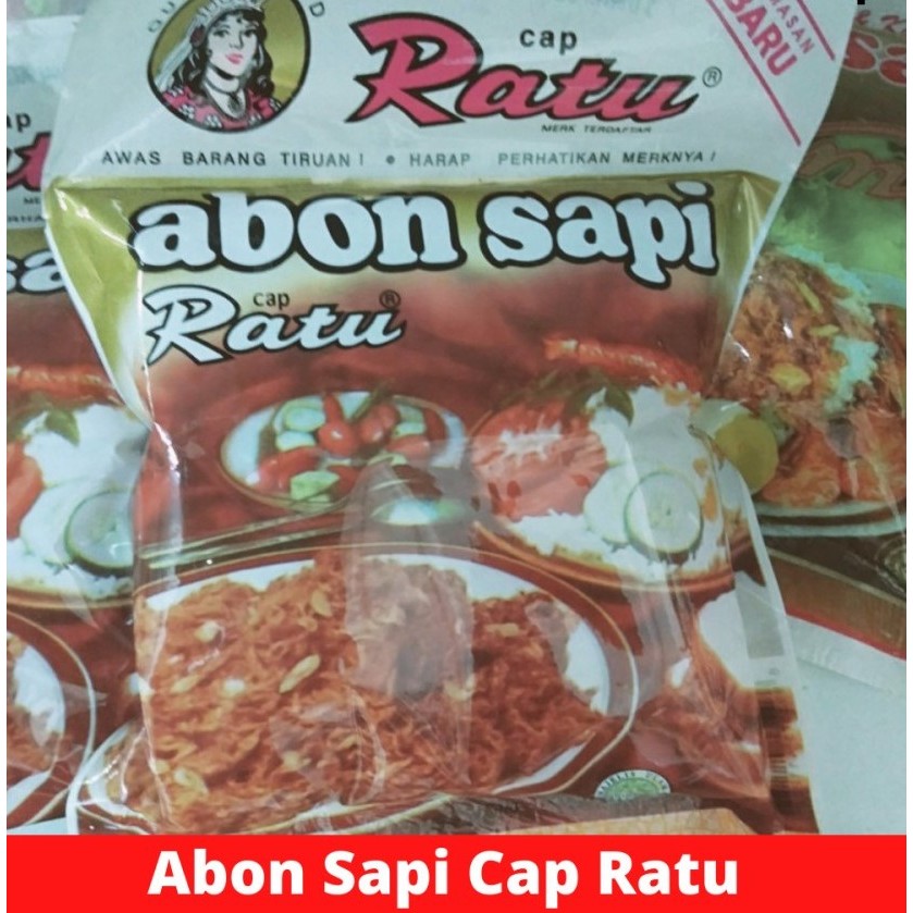 Abon Sapi Ratu terbuat dari daging sapi murni, dan bumbu-bumbu terpilih. Sangat dianjurkan dimakan campur dengan lauk-pauk dan lezat pula dimakan dengan roti.