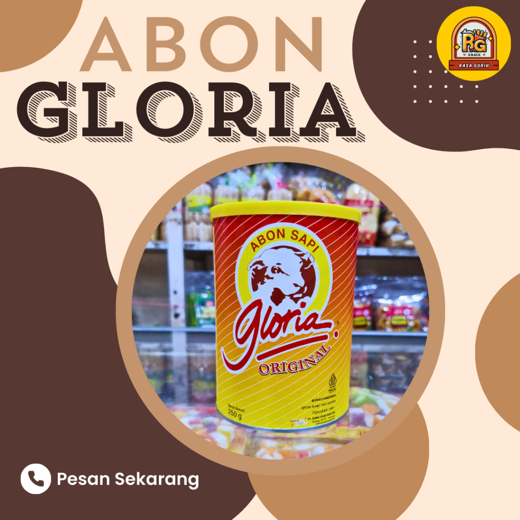Abon Sapi Gloria, kelezatan dalam setiap suapan! Dibuat dari daging sapi pilihan dengan bumbu khas yang meresap sempurna, cocok sebagai pelengkap nasi, roti, atau camilan. Praktis, bergizi, dan lezat. Pesan sekarang dan nikmati sendiri kenikmatannya!