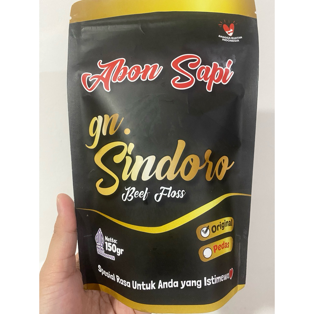 Abon Sapi cap Gn Sindoro terbuat dari daging sapi pilihan dengan bumbu resep tradisional, diproses secara higienis sehingga terasa lezat, berprotein dan menyehatkan