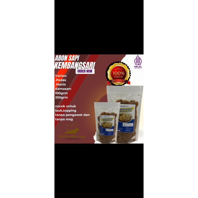 Abon sapi adalah produk yang dijual dengan rasa yang enak dan gurih. Abon sapi dapat digunakan sebagai bahan tambahan makanan yang dapat meningkatkan rasa dan aroma makanan. Produk ini terbuat dari daging sapi yang diolah dengan baik sehingga menghasilkan abon sapi yang berkualitas.