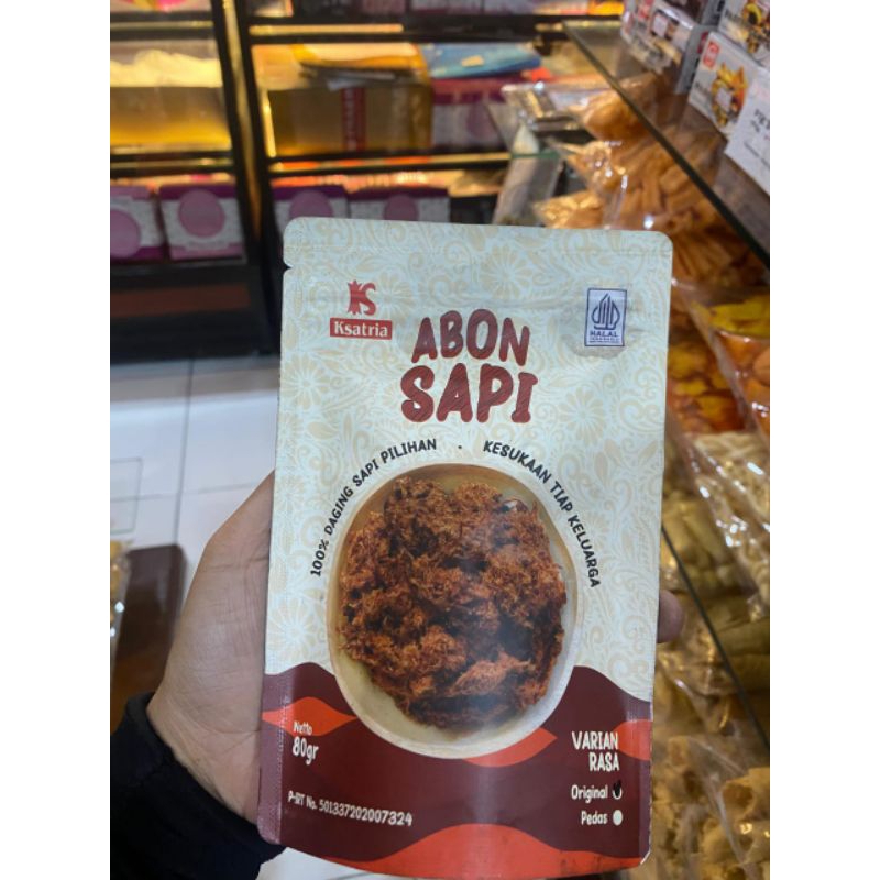 Abon sapi ksatria dibuat dari bahan pilihan dan dibumbui dengan rempah-rempah berkualitas yang diproses secara profesional dan higienis.