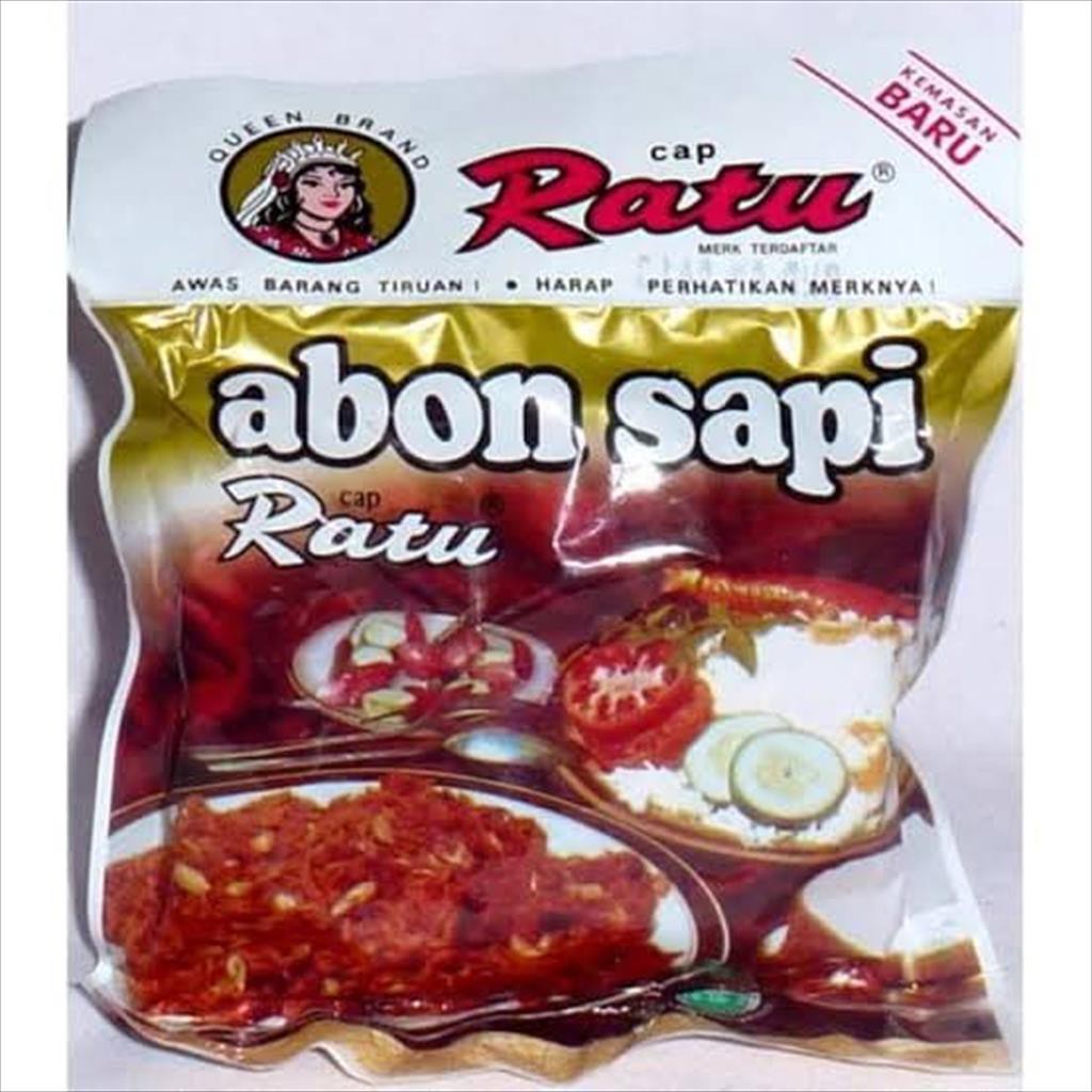 ABON SAPI CAP RATU 90 GR ASLI ABON SAPI RATU TERBUAT DARI DAGING SAPI MURNI, DAN BUMBU YANG TERPILIH.